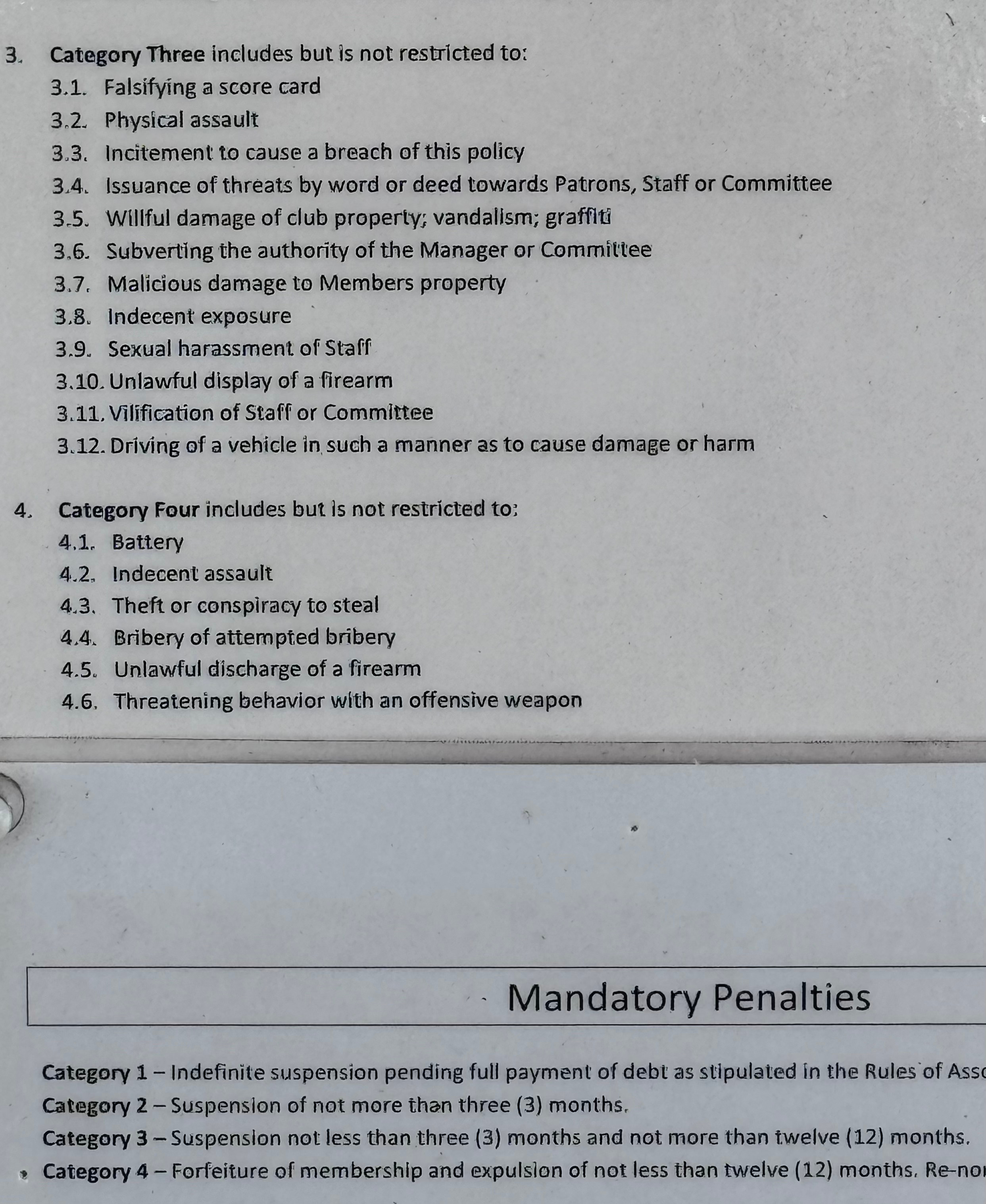 Finally, a picture of the penalty categories at the Royal Port Moresby Golf Club…